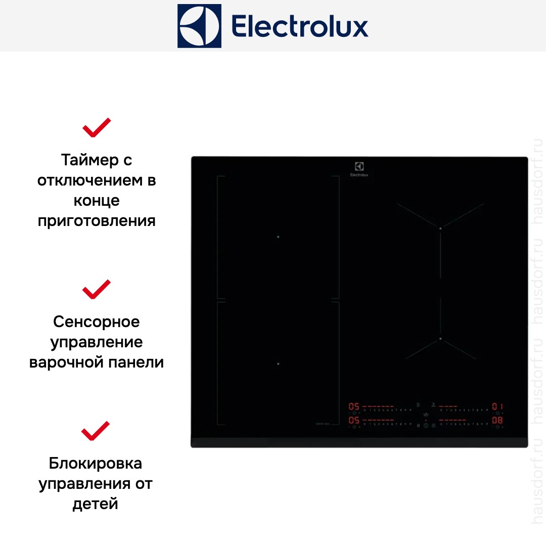 Таймер с отключением в конце приготовления в электрических варочных панелях Electrolux предназначается для безопасной, удобной и экономичной готовки. Длительность приготовления задается при помощи кнопок сенсорного меню для каждой зоны нагрева: о том, что блюдо готово, оповещает звуковой сигнал.