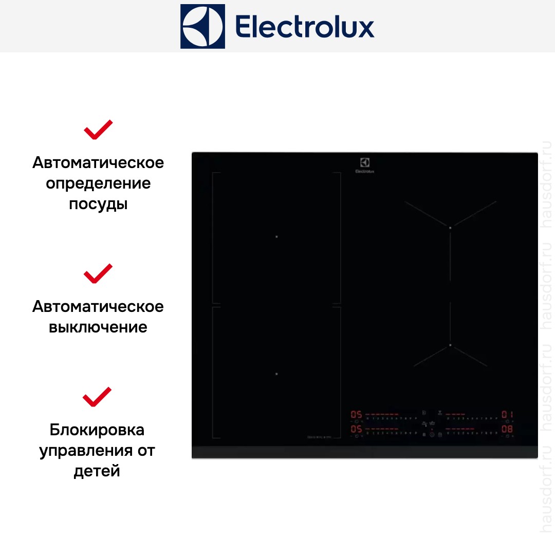 Таймер с отключением в конце приготовления в электрических варочных панелях Electrolux предназначается для безопасной, удобной и экономичной готовки. Длительность приготовления задается при помощи кнопок сенсорного меню для каждой зоны нагрева: о том, что блюдо готово, оповещает звуковой сигнал.