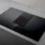Вытяжка, встроенная в варочную панель — достаточно удобный вариант, позволяющий сэкономить место в кухне. Такая конструкция позволяет лучше улавливать испарения, не давая им распространяться по всему помещению, и способствует более качественной очистке воздуха. Большинство подобных моделей может работать только в режиме рециркуляции воздуха, с удалением капель жира, сажи, неприятных запахов при помощи системы фильтров. Работу в режиме отвода загрязненного воздуха через систему вентиляции организовать довольно сложно, поскольку вытяжка располагается низко над полом. Часто варочная панель находится на кухонном острове, что также мешает присоединению к вентиляции. Еще одна особенность подобных моделей состоит в том, что под варочной панелью нельзя разместить духовку или другую технику, так как место будет занято.