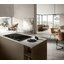 Вытяжка, встроенная в варочную панель — достаточно удобный вариант, позволяющий сэкономить место в кухне. Такая конструкция позволяет лучше улавливать испарения, не давая им распространяться по всему помещению, и способствует более качественной очистке воздуха. Большинство подобных моделей может работать только в режиме рециркуляции воздуха, с удалением капель жира, сажи, неприятных запахов при помощи системы фильтров. Работу в режиме отвода загрязненного воздуха через систему вентиляции организовать довольно сложно, поскольку вытяжка располагается низко над полом. Часто варочная панель находится на кухонном острове, что также мешает присоединению к вентиляции. Еще одна особенность подобных моделей состоит в том, что под варочной панелью нельзя разместить духовку или другую технику, так как место будет занято.