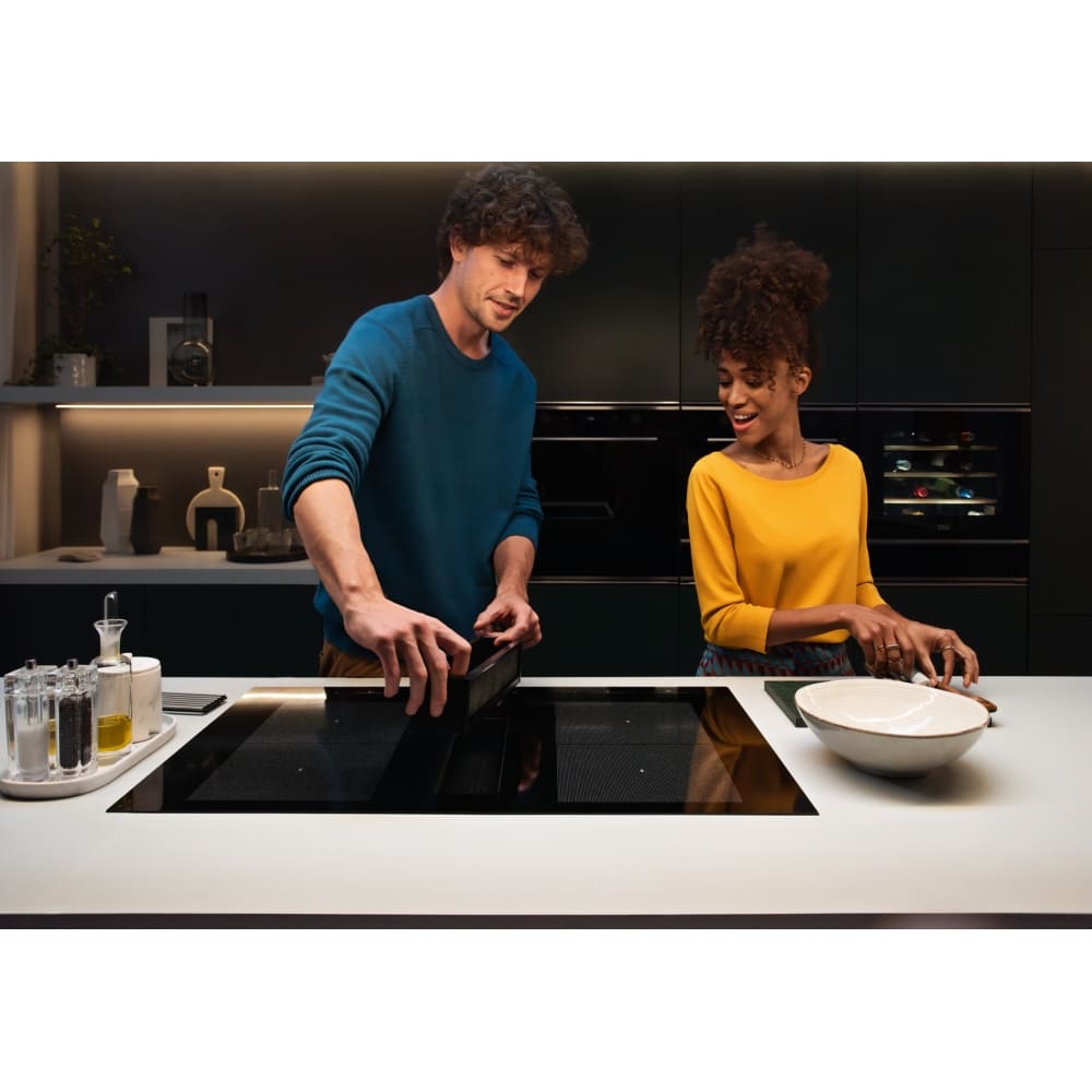 - Индукционная поверхность с четырьмя зонами, Bridge и Booster — быстрый разогрев для больших кастрюль.