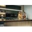 Также опасно устанавливать варочную панель вплотную к холодильнику или шкафу: следует оставить между ними расстояние не менее 30 см. Зазор между задней стороной варочной панели и стенкой кухни составляет обычно не менее 50 см для электрических панелей и 70 см — для газовых. Иногда стену кухни защищают огнеупорной панелью.