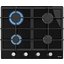 Выбор газовой варочной панели чаще всего обусловлен тем, что в частный дом или квартиру проведен именно газ в качестве обогрева. Работать с этой моделью довольно просто, так как мощность нагрева видна невооруженным взглядом — по силе огня в горелке. Количество конфорок в этой модели: 4.