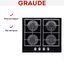 Конфорки располагаются на панели из черного закаленного стекла. Она гармонично и стильно сочетается с чугунными держателями. Регуляторы в цвете нержавеющая сталь дополняют современный образ модели. Ручки легко крутятся для комфортной настройки уровня мощности. В каждый элемент интегрирован автоматический электроподжиг.