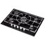 На поверхности располагаются пять эффективных конфорок. За счет качественных форсунок газ равномерно подается в каждую горелку, благодаря чему пламя остается ровным и не прерывистым. Составная трехсекционная решетка легко снимается и устанавливается на место. Держатели выполнены из чугуна, что гарантирует длительный срок службы с сохранением внешнего вида и рабочих характеристик. Чуть шероховатая поверхность создает дополнительную устойчивость посуде, но при этом не царапает дно посуды. Среди преимуществ устройства: опция газового контроля, а также автоматический электроподжиг.