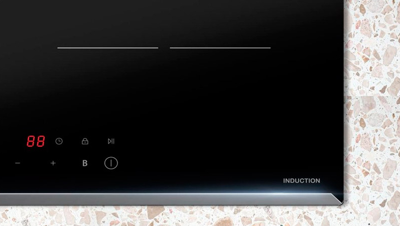 Управление реализовано с помощью электронной системы с фронтальным расположением элементов. Сенсорные переключатели TouchControl обеспечивают точную и мгновенную реакцию на команды, позволяя легко настраивать мощность каждой из четырёх зон — от деликатного томления до интенсивного кипячения. Отсутствие механических кнопок подчёркивает чистоту линий и упрощает уход за поверхностью.