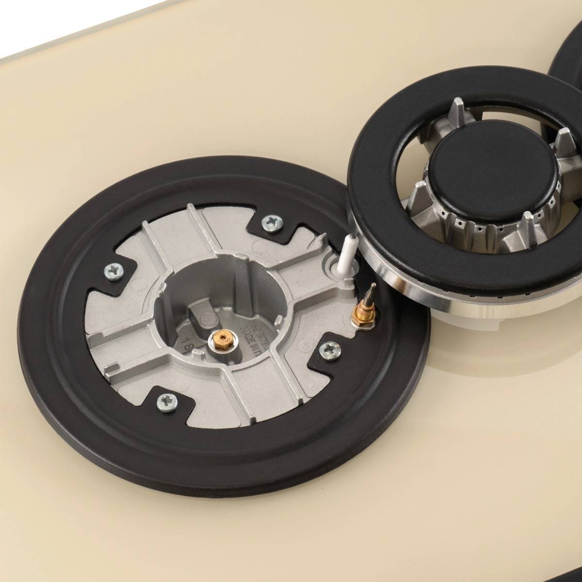 Каждая конфорка включает в себя, кроме рассекателя, основание и крышку. Крышка служит для отражения потока газа и поступления его в отверстия рассекателя. Мощность конфорки зависит от ее диаметра: в некоторых горелках имеется не один, а два или три контура пламени. Безопасность использования гарантирует система «газ-контроль», мгновенно останавливающая подачу газа при угасании пламени. Для размещения посуды на поверхности служит сплошная или раздельная решетка, которая чаще всего изготавливается из чугуна.