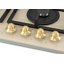Выбор газовой варочной панели чаще всего обусловлен тем, что в частный дом или квартиру проведен именно газ в качестве обогрева. Работать с этой моделью довольно просто, так как мощность нагрева видна невооруженным взглядом — по силе огня в горелке. Количество конфорок в этой модели: 4. Горелки с двойной короной позволяют увеличивать мощность нагрева в зависимости от диаметра посуды.