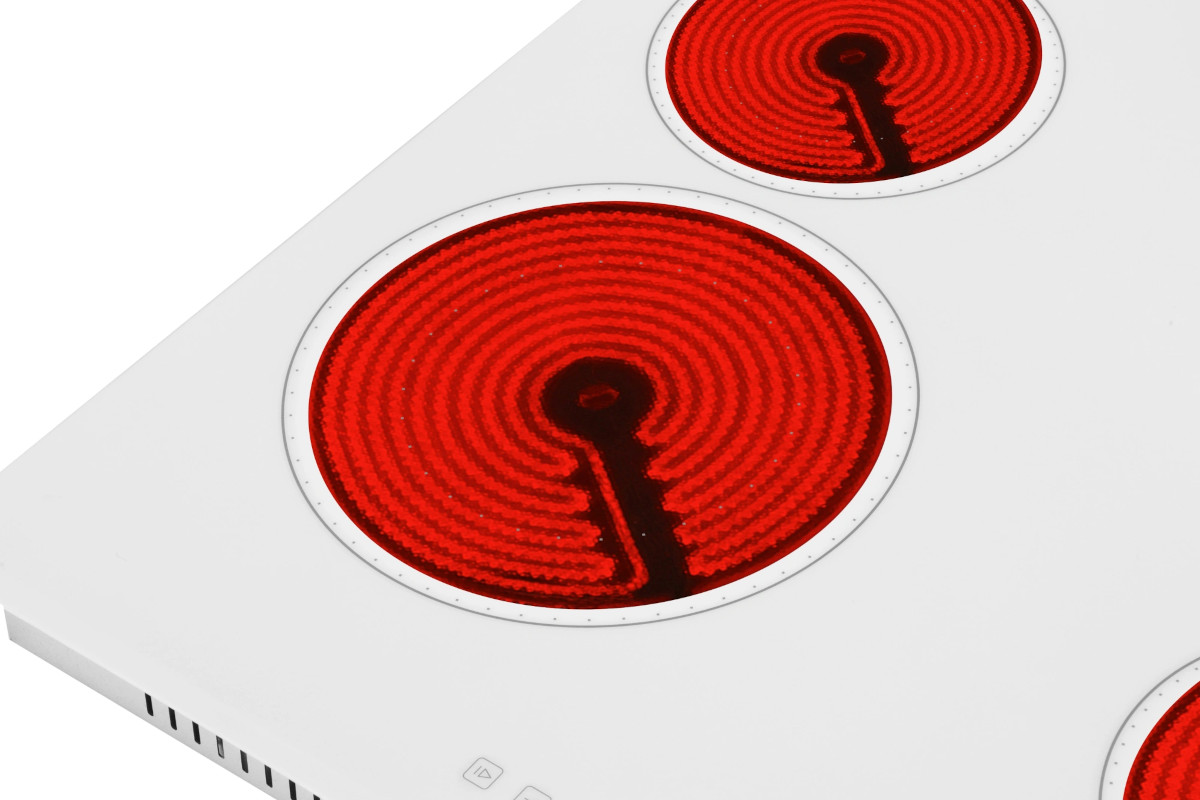 Цвет — белый. Материал самой поверхности: стеклокерамика. Управление этой моделью электронное. Для переключения уровней нагрева, выбора функций используются следующие переключатели: сенсорный слайдер/TouchSlider. Продвинутая система контроля за прибором делают его современным и отвечающим на главные запросы покупателя.