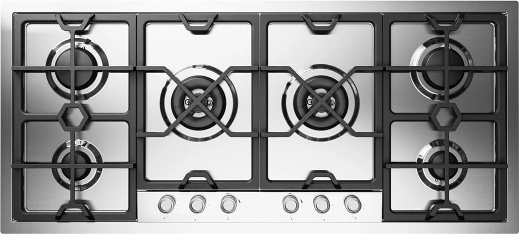 Выбор газовой варочной панели чаще всего обусловлен тем, что в частный дом или квартиру проведен именно газ в качестве обогрева. Работать с этой моделью довольно просто, так как мощность нагрева видна невооруженным взглядом — по силе огня в горелке. Количество конфорок в этой модели: 6. Горелки с двойной короной позволяют увеличивать мощность нагрева в зависимости от диаметра посуды.
