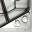 Конфорки в этой модели расположены в форме ромба, что в свою очередь создает гораздо больше удобства при эксплуатации, чем классическое размещение горелок и поворотных переключателей. Чугунные съемные решетки очень надежно фиксируют посуду любого размера, используемую в процессе приготовления. Поворотные переключатели с электроподжигом расположены по углам рабочей поверхности панели.