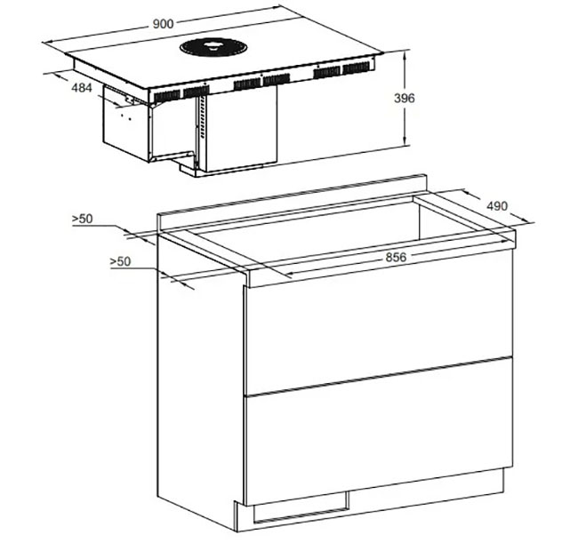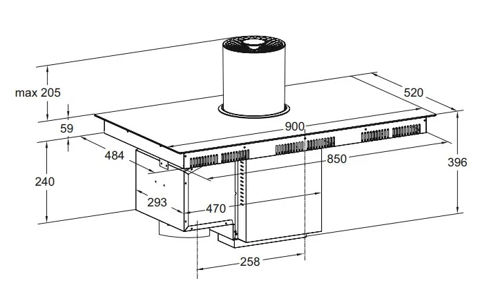 Модель обладает продуманными габаритами: её внешние размеры составляют 6,2 см в высоту, 90 см в ширину и 52 см в глубину. При этом для монтажа требуется ниша шириной 85 см и глубиной 48,4 см, что позволяет гармонично вписать технику в столешницу без излишних зазоров. Такая компоновка сохраняет целостность интерьера и обеспечивает удобный доступ ко всем функциям. Компактная высота делает панель идеальной для тонких столешниц, не нарушая эргономики рабочей зоны.