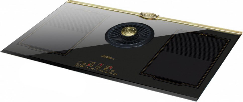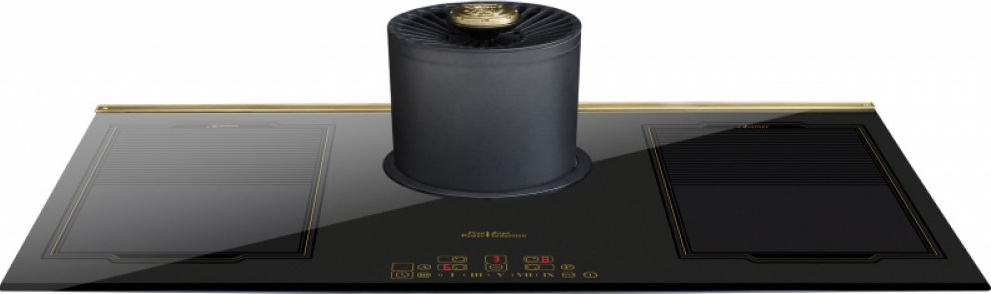 Вытяжка, встроенная в варочную панель — достаточно удобный вариант, позволяющий сэкономить место в кухне. Такая конструкция позволяет лучше улавливать испарения, не давая им распространяться по всему помещению, и способствует более качественной очистке воздуха. Большинство подобных моделей может работать только в режиме рециркуляции воздуха, с удалением капель жира, сажи, неприятных запахов при помощи системы фильтров. Работу в режиме отвода загрязненного воздуха через систему вентиляции организовать довольно сложно, поскольку вытяжка располагается низко над полом. Часто варочная панель находится на кухонном острове, что также мешает присоединению к вентиляции. Еще одна особенность подобных моделей состоит в том, что под варочной панелью нельзя разместить духовку или другую технику, так как место будет занято.