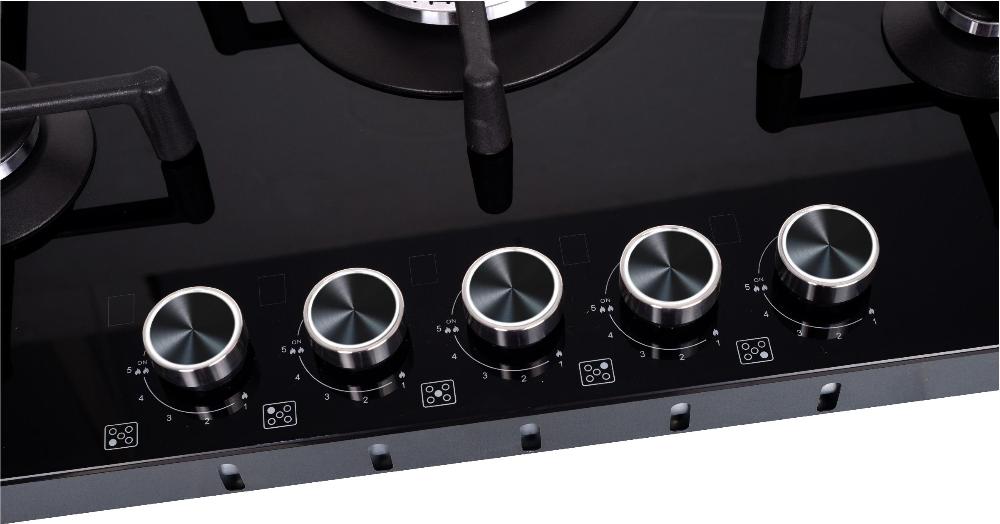 Выбор газовой варочной панели чаще всего обусловлен тем, что в частный дом или квартиру проведен именно газ в качестве обогрева. Работать с этой моделью довольно просто, так как мощность нагрева видна невооруженным взглядом — по силе огня в горелке. Количество конфорок в этой модели: 5.