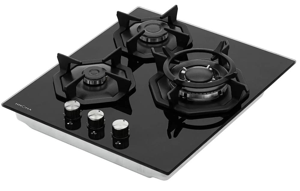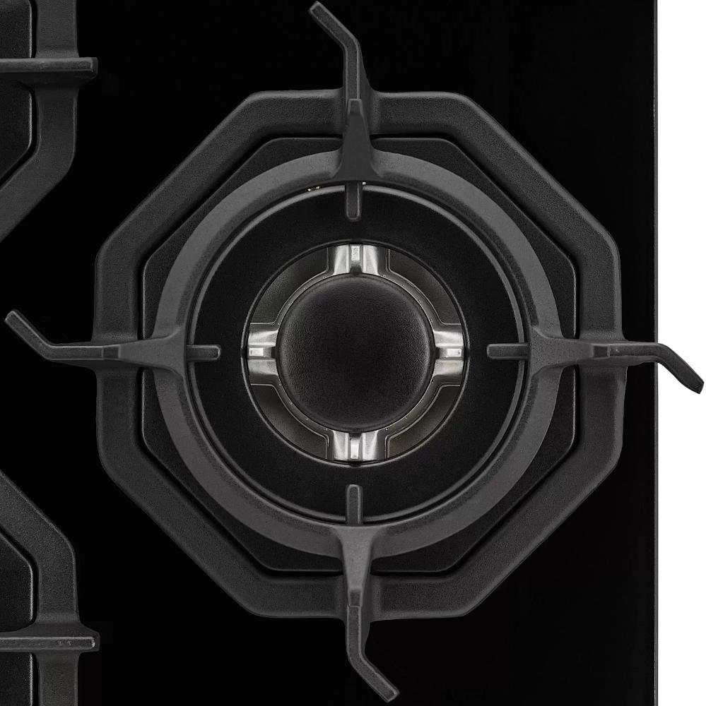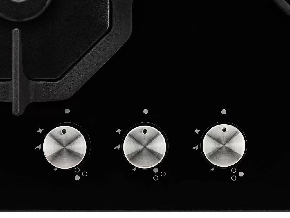 Три газовые конфорки распределены для максимального удобства. Правая горелка мощностью 3.8 кВт подходит для жарки и быстрого кипячения. Задняя левая с мощностью 1.7 кВт хороша для среднего нагрева и тушения. Передняя левая с мощностью 1 кВт идеальна для деликатной готовки и поддержания небольшой температуры.