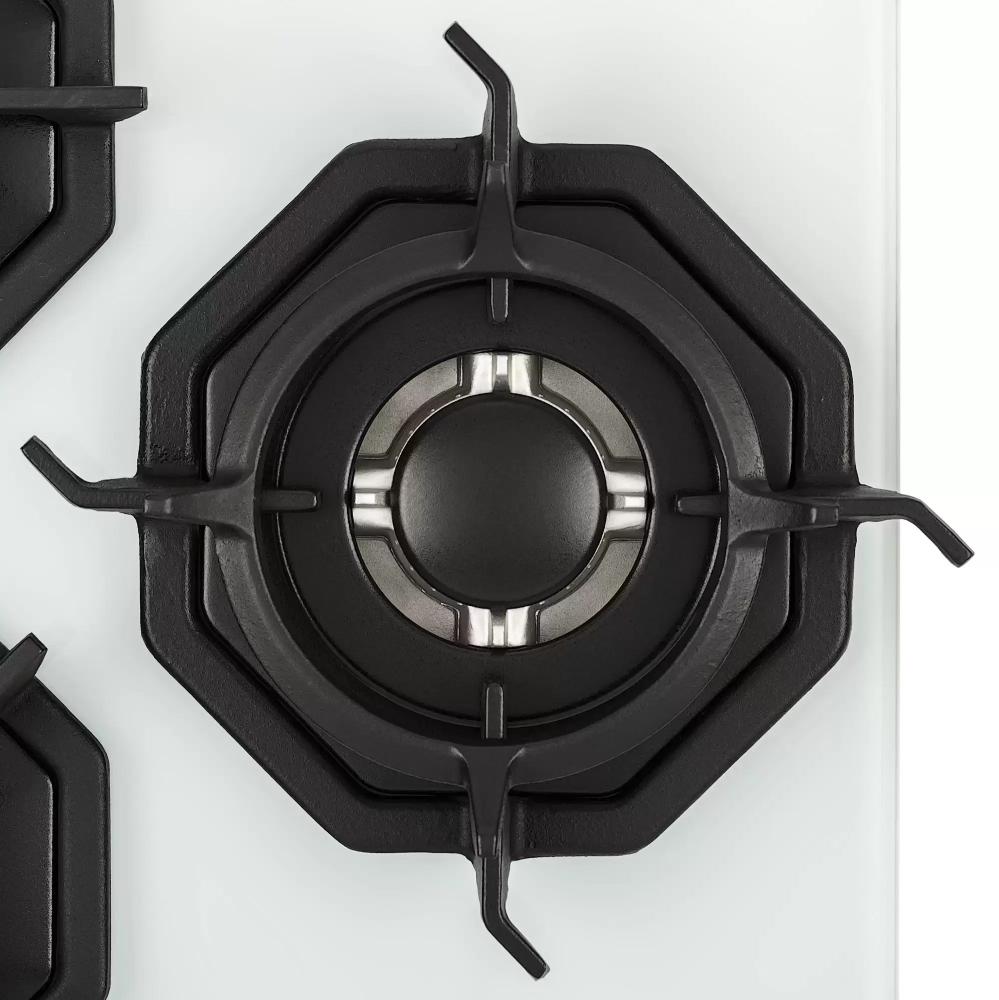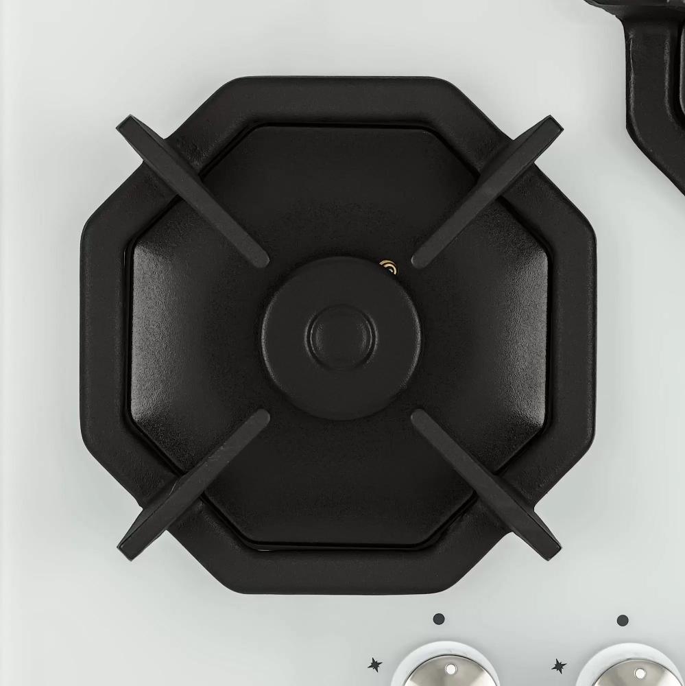 Выбор газовой варочной панели чаще всего обусловлен тем, что в частный дом или квартиру проведен именно газ в качестве обогрева. Работать с этой моделью довольно просто, так как мощность нагрева видна невооруженным взглядом — по силе огня в горелке. Количество конфорок в этой модели: 3.