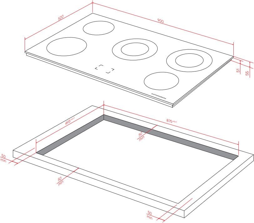 Электрические и индукционные варочные панели из стали, эмали и стеклокерамики имеют толщину от 4 до 5,5 cм, но выглядят более низкими, так как на них отсутствуют выступающие горелки. Как правило, подробные требования к толщине столешницы для установки приводятся в руководстве пользователя.