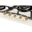 Для варочных панелей в стиле кантри, ампир или классическом характерны латунные ручки из сплава меди и цинка, которые смотрятся благородно и выигрышно. Реже производятся модели, имеющие золотистую или медную фурнитуру.