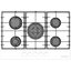 Выбор газовой варочной панели чаще всего обусловлен тем, что в частный дом или квартиру проведен именно газ в качестве обогрева. Работать с этой моделью довольно просто, так как мощность нагрева видна невооруженным взглядом — по силе огня в горелке. Количество конфорок в этой модели: 5.