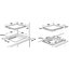 Ширина варочной панели — одна из важнейших ее характеристик, которая зависит главным образом от количества и порядка размещения конфорок. Тип нагрева на нее практически не влияет. Как правило, конфорки размещаются в два ряда, причем более мощные располагаются во втором ряду. Производители выпускают также модели с одним рядом конфорок — например, для установки на кухонном острове, — а также с расположением зон нагрева в форме ромба или трапеции.