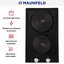 Maunfeld EEHE.32.4B — электрическая варочная панель шириной 30 см с двумя конфорками. Ее особенность — четыре ножки-опоры, за счет которых модель может использовать по-разному: либо устанавливать на столешницу, либо встраивать в нее. Поверхность изготовлена из стали с прочным и удобным в очистке эмалевым покрытием. Конфорки быстрого нагрева HP RAPID сделаны из чугуна, а поворотные переключатели с хромированными накладками на фронтальной механической панели управления — из термостойкого пластика. Стальная рамка по периметру не дает пролитой жидкости попасть на столешницу.