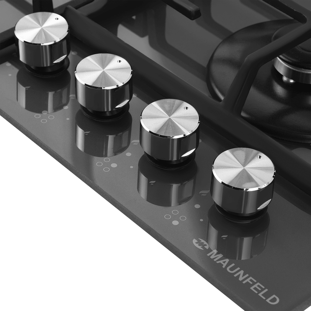 Выбор газовой варочной панели чаще всего обусловлен тем, что в частный дом или квартиру проведен именно газ в качестве обогрева. Работать с этой моделью довольно просто, так как мощность нагрева видна невооруженным взглядом — по силе огня в горелке. Количество конфорок в этой модели: 4.