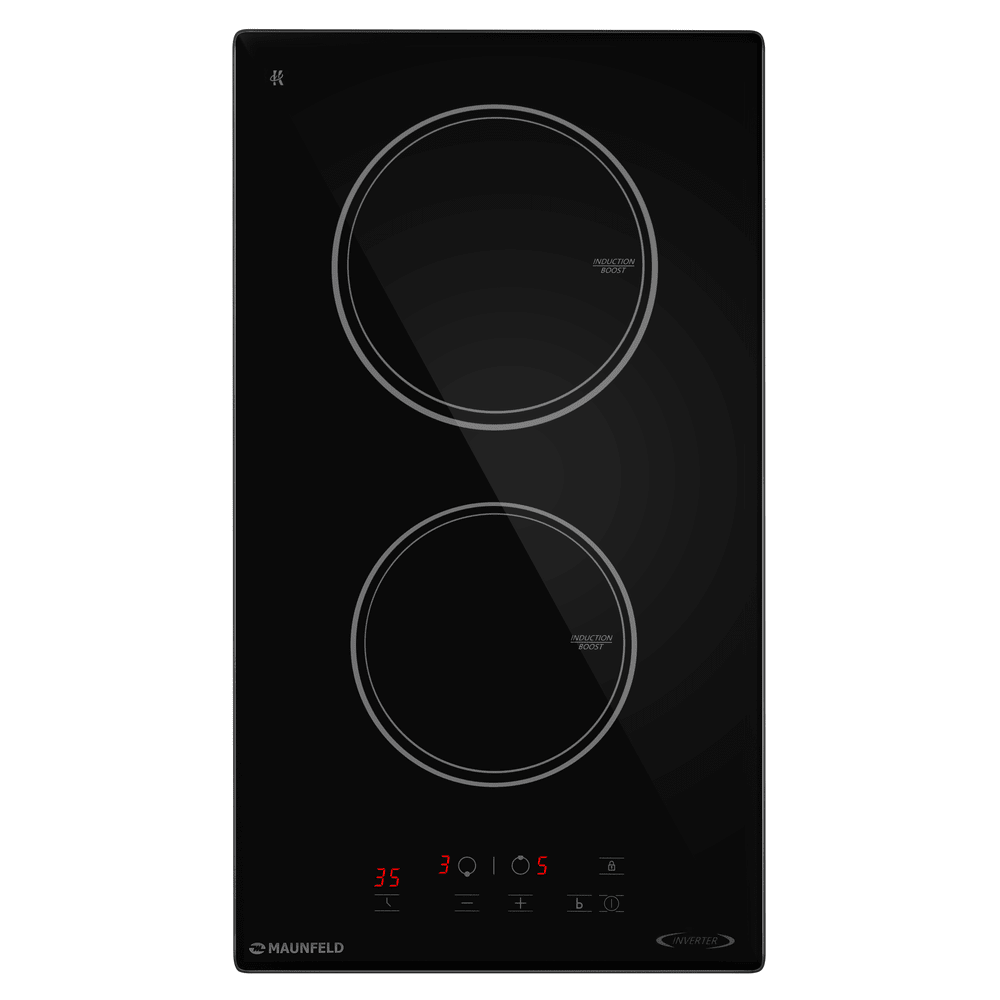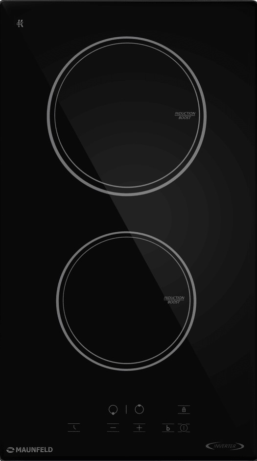 Варочная панель работает на индукционном нагреве — это значит, что повышается температура непосредственно посуды, в которой готовится блюдо. Таким образом промежуточная ступень с предварительным нагревом конфорки пропускается — сокращается время, повышается безопасность. Количество конфорок в этой модели: 2.