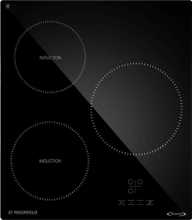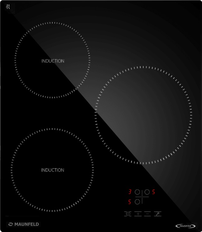 Варочная панель работает на индукционном нагреве — это значит, что повышается температура непосредственно посуды, в которой готовится блюдо. Таким образом промежуточная ступень с предварительным нагревом конфорки пропускается — сокращается время, повышается безопасность. Количество конфорок в этой модели: 3.
