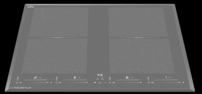 Варочная панель работает на индукционном нагреве — это значит, что повышается температура непосредственно посуды, в которой готовится блюдо. Таким образом промежуточная ступень с предварительным нагревом конфорки пропускается — сокращается время, повышается безопасность. Количество конфорок в этой модели: 4.