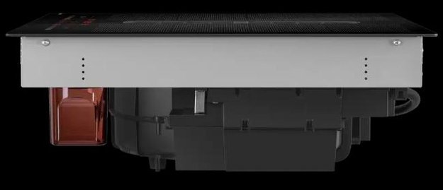 Вытяжка, встроенная в варочную панель — достаточно удобный вариант, позволяющий сэкономить место в кухне. Такая конструкция позволяет лучше улавливать испарения, не давая им распространяться по всему помещению, и способствует более качественной очистке воздуха. Большинство подобных моделей может работать только в режиме рециркуляции воздуха, с удалением капель жира, сажи, неприятных запахов при помощи системы фильтров. Работу в режиме отвода загрязненного воздуха через систему вентиляции организовать довольно сложно, поскольку вытяжка располагается низко над полом. Часто варочная панель находится на кухонном острове, что также мешает присоединению к вентиляции. Еще одна особенность подобных моделей состоит в том, что под варочной панелью нельзя разместить духовку или другую технику, так как место будет занято.