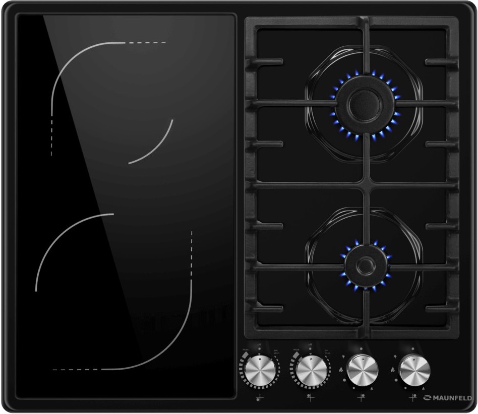 Варочная панель Маунфилд EEHE.642VC.3CB/KG работает с несколькими видами нагрева — благодаря такой комбинации можно экономить энергию, выбирать более подходящие конфорки для тех блюд, которые хочется приготовить сейчас. Количество конфорок в этой модели: 4.