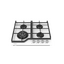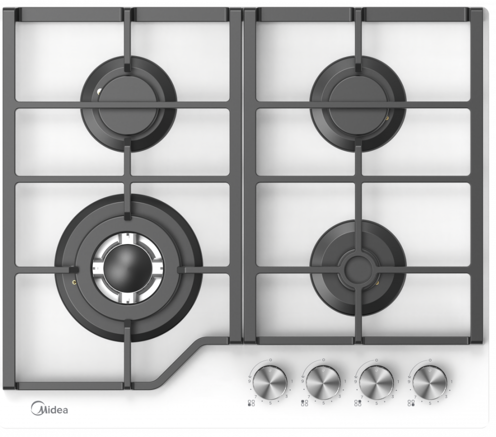 Цвет — белый. Благодаря отсутствию рамки она отлично впишется в интерьер и не займет лишнее место на столешнице, которое можно использовать для работы. Открытый огонь не страшен ни вашей посуде, ни вам, так как горелки надежно закрыты решетками. Материал самой поверхности: закаленное стекло. Управление этой моделью механическое. Для переключения уровней нагрева, выбора функций используются следующие переключатели: поворотные. Простая система контроля за прибором делают его более универсальным, ведь разобраться сможет кто угодно.