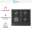 Газовая варочная панель Midea MG697TTGB сочетает строгий чёрный стиль и продуманную функциональность для удобной готовки в современной кухне. Её тонкий профиль высотой 9 см и прямой край делают прибор аккуратным встраиваемым акцентом, а тёмное закалённое стекло придает интерьеру минималистичный вид. Серые элементы фурнитуры мягко контрастируют с чёрной поверхностью и выдерживают ежедневную эксплуатацию без заметных следов износа.