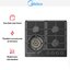 Варочная панель Midea MG697VGB — это газовая независимая модель в черном исполнении с закалённой стеклянной поверхностью. Габариты компактны и удобны: 9×60×51.5 см, при этом для встраивания требуется ниша 56×48 см. Прямой край делает дизайн лаконичным и позволяет аккуратно уложить панель в столешницу. Серые элементы фурнитуры гармонично дополняют чёрный тон, создавая современный внешний вид.
