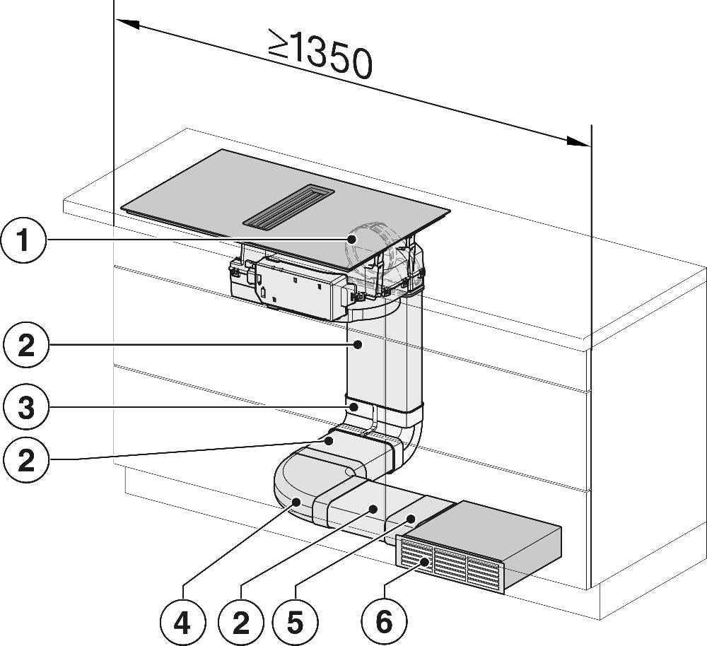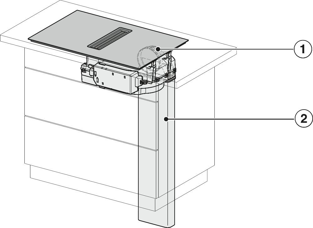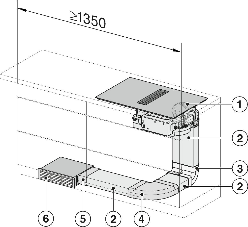 Вытяжка, встроенная в варочную панель — достаточно удобный вариант, позволяющий сэкономить место в кухне. Такая конструкция позволяет лучше улавливать испарения, не давая им распространяться по всему помещению, и способствует более качественной очистке воздуха. Большинство подобных моделей может работать только в режиме рециркуляции воздуха, с удалением капель жира, сажи, неприятных запахов при помощи системы фильтров. Работу в режиме отвода загрязненного воздуха через систему вентиляции организовать довольно сложно, поскольку вытяжка располагается низко над полом. Часто варочная панель находится на кухонном острове, что также мешает присоединению к вентиляции. Еще одна особенность подобных моделей состоит в том, что под варочной панелью нельзя разместить духовку или другую технику, так как место будет занято.