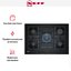 Стильная панель черного цвета шириной 75 см и глубиной 52 см с пятью конфорками подойдет для регулярной готовки в большой семье. Кроме центральной конфорки, она оснащена одной конфоркой увеличенной мощности 3 кВт, двумя стандартными конфорками и одной вспомогательной. Для использования сковороды с округлым дном можно приобрести специальную подставку. На вспомогательной маломощной конфорке можно готовить кофе в кофеварке эспрессо — для этого также понадобится отдельная подставка.