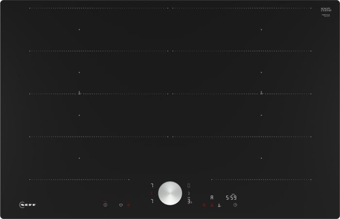 Варочная панель Neff T68PTY4L0 — независимая индукционная модель с электрическим подключением. Строгий черный цвет и конструкция без рамки создают эффект единой рабочей поверхности, которая легко вписывается в современную кухню. Низкий профиль высотой 5.6 см и установка заподлицо обеспечивают аккуратный стык со столешницей. Стеклокерамическая поверхность не только эстетична, но и устойчива к нагреву и царапинам, что сокращает необходимость в трудоемком уходе.