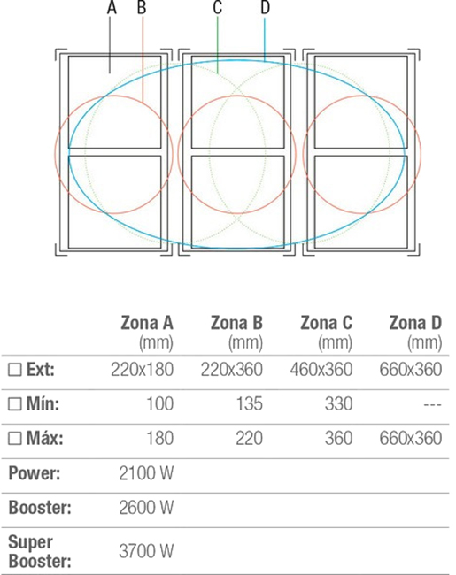 Вы можете объединить две и более конфорки в одну. Благодаря этому приготовление в нестандартной, овальной или крупной посуде не представляет проблем.
