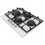 Цвет — белый. Благодаря отсутствию рамки она отлично впишется в интерьер и не займет лишнее место на столешнице, которое можно использовать для работы. Открытый огонь не страшен ни вашей посуде, ни вам, так как горелки надежно закрыты решетками. Материал самой поверхности: закаленное стекло. Управление этой моделью механическое. Для переключения уровней нагрева, выбора функций используются следующие переключатели: поворотные. Простая система контроля за прибором делают его более универсальным, ведь разобраться сможет кто угодно.