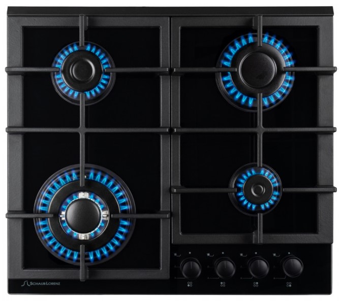 Выбор газовой варочной панели чаще всего обусловлен тем, что в частный дом или квартиру проведен именно газ в качестве обогрева. Работать с этой моделью довольно просто, так как мощность нагрева видна невооруженным взглядом — по силе огня в горелке. Количество конфорок в этой модели: 4.