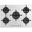 Независимая варочная поверхность изготовлена из белого закаленного стекла на основании из нержавеющей стали. Ультранизкие газовые горелки не рассеивают пламя, а нагревают сразу дно посуды, благодаря чему их КПД повышается, а расход газа совращается. Центральная конфорка отличается увеличенным диаметром и высокой мощностью нагрева 3,2 кВт. Индивидуальные решетки из чугуна, выполненные в дизайне Linea, выделяются небольшими размерами, устойчивостью и надежностью. Для регулировки мощности служат эргономичные не нагревающиеся поворотные переключатели с электроподжигом.