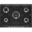 Практичная в эксплуатации решетка с перекрещивающимися элементами над горелками позволяет использовать посуду небольших размеров, например, турку, без риска ее сваливания на бок. Пользователь может приобрести дополнительные аксессуары для варочной панели: набор ручек с кристаллами Swarovski, чугунный гриль или чугунное кольцо для WOK. Среди преимуществ: газ-контроль, автоматический электроподжиг, чугунные решетки.
