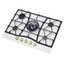 Выбор газовой варочной панели чаще всего обусловлен тем, что в частный дом или квартиру проведен именно газ в качестве обогрева. Работать с этой моделью довольно просто, так как мощность нагрева видна невооруженным взглядом — по силе огня в горелке. Количество конфорок в этой модели: 5.