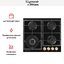 Выбор газовой варочной панели чаще всего обусловлен тем, что в частный дом или квартиру проведен именно газ в качестве обогрева. Работать с этой моделью довольно просто, так как мощность нагрева видна невооруженным взглядом — по силе огня в горелке. Количество конфорок в этой модели: 4.