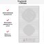 Цвет — белый. Благодаря отсутствию рамки она отлично впишется в интерьер и не займет лишнее место на столешнице, которое можно использовать для работы. Материал самой поверхности: стеклокерамика. Управление этой моделью электронное. Для переключения уровней нагрева, выбора функций используются следующие переключатели: сенсорные/TouchControl. Продвинутая система контроля за прибором делают его современным и отвечающим на главные запросы покупателя.