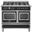 Устройства с тремя духовками также имеют один основной и две дополнительных шкафа разного объема: например, плиты Bertazzoni оснащены большой духовкой объемом 69 литров, средней объемом 54 литра и малой объемом 24 литра. Духовки располагаются в два ряда: две меньшие духовки в одном ряду, большая и ящик для посуды в другом.