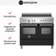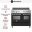 Устройства с тремя духовками также имеют один основной и две дополнительных шкафа разного объема: например, плиты Bertazzoni оснащены большой духовкой объемом 69 литров, средней объемом 54 литра и малой объемом 24 литра. Духовки располагаются в два ряда: две меньшие духовки в одном ряду, большая и ящик для посуды в другом.