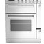 Устройства с тремя духовками также имеют один основной и две дополнительных шкафа разного объема: например, плиты Bertazzoni оснащены большой духовкой объемом 69 литров, средней объемом 54 литра и малой объемом 24 литра. Духовки располагаются в два ряда: две меньшие духовки в одном ряду, большая и ящик для посуды в другом.