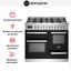 Устройства с тремя духовками также имеют один основной и две дополнительных шкафа разного объема: например, плиты Bertazzoni оснащены большой духовкой объемом 69 литров, средней объемом 54 литра и малой объемом 24 литра. Духовки располагаются в два ряда: две меньшие духовки в одном ряду, большая и ящик для посуды в другом.