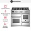 Устройства с тремя духовками также имеют один основной и две дополнительных шкафа разного объема: например, плиты Bertazzoni оснащены большой духовкой объемом 69 литров, средней объемом 54 литра и малой объемом 24 литра. Духовки располагаются в два ряда: две меньшие духовки в одном ряду, большая и ящик для посуды в другом.